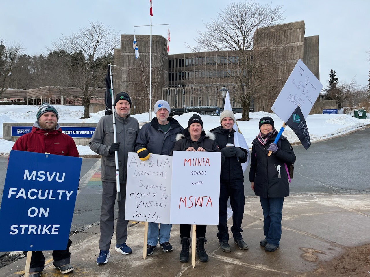Dora Tam (Vice President and Treasurer) and David Stewart (Past President) recently joined the picket line at Mount Saint Vincent University on February 16.